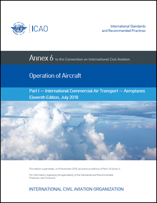 1. Annex 6 – Operation of Aircraft, Part I – International Commercial Air Transport – Aeroplanes;