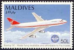 Maldives – 31 December 1994 50th Anniversary of ICAO Boeing 747 in flight from Virgin Airline |