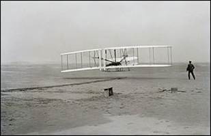 17 December 1903 The dream comes true. Orville Wright makes the first manned, powered and controlled flight, as his brother Wilbur watches. |