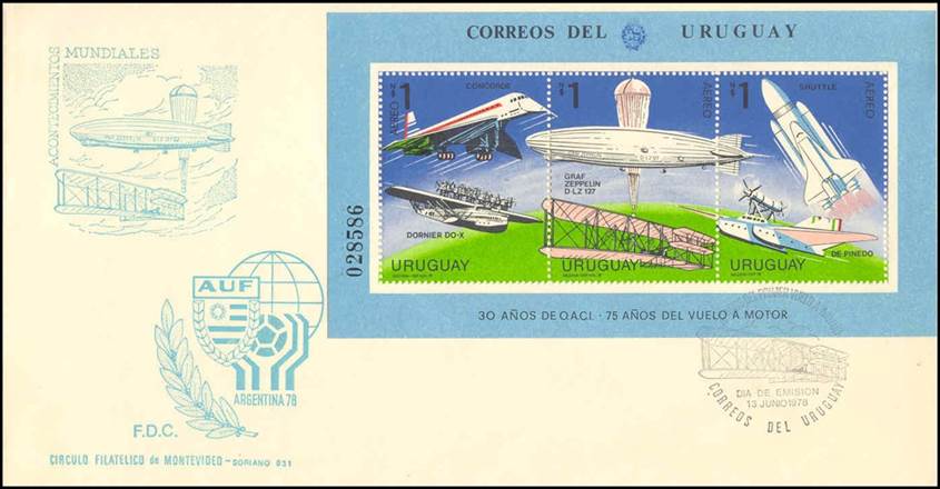 13 June 1978 - Uruguay - 30th Anniversary of ICAO and 75th Anniversary of first engine‑powered flight of Wright brothers - Wright Flyer I