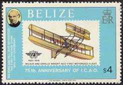 30 July 1979 - Belize - 100th Anniversary of Sir Rowland Hill death and 75th anniversary of the first powered flight Wright Flyer I and ICAO emblem. The designer of this stamp included the ICAO emblem, with the text: 75th ANNIVERSARY OF I.C.A.O. Belize inadvertently confused the 75th anniversary of the Wright brothers’ triumph on 17 December 1903, with ICAO which, even today, has not yet reached such a milestone.