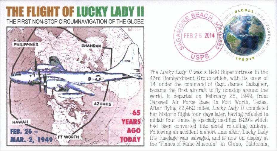 Souvenir Cover commemorating Lucky Lady II’s feat in 1949. |
