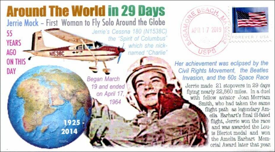 First Day Cover commemorating Geraldine Mock’s feat in 1964. |