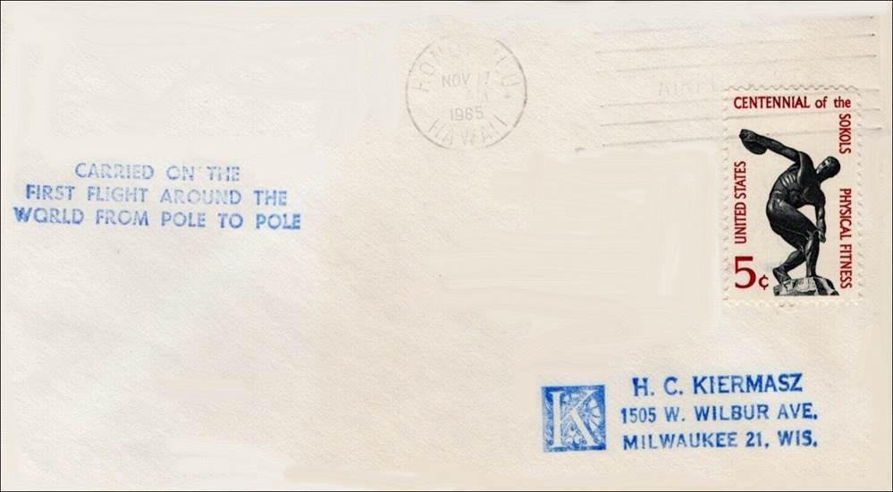 Cover commemorating the first flight around the world from Pole to Pole in 1965. |