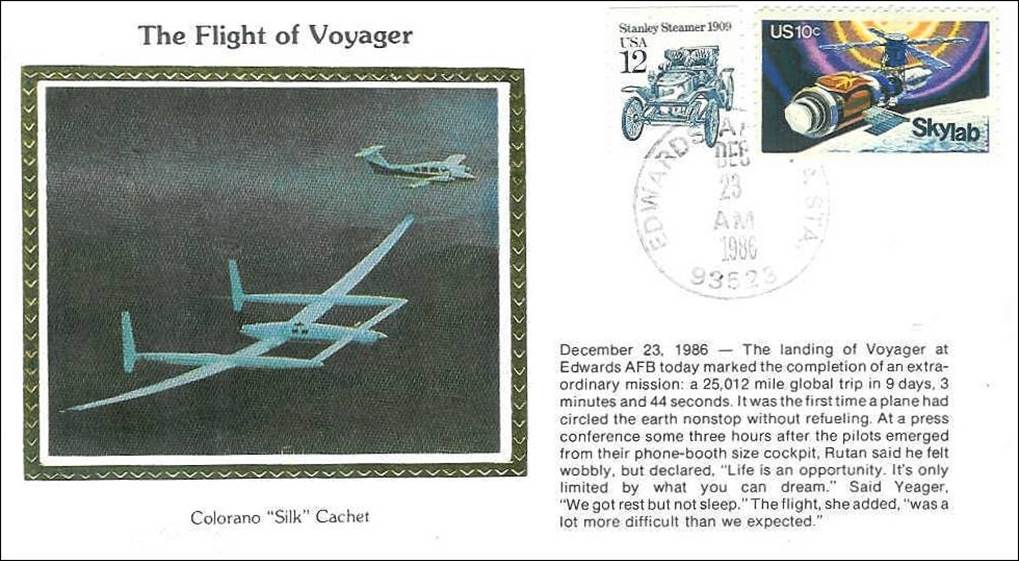 First Day Cover commemorating the flight by Voyager in 1986. |
