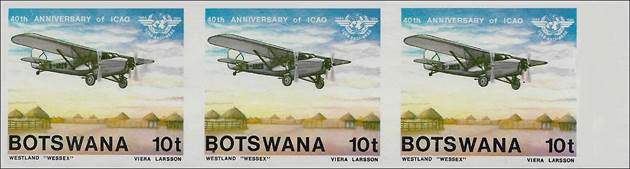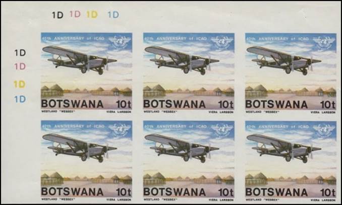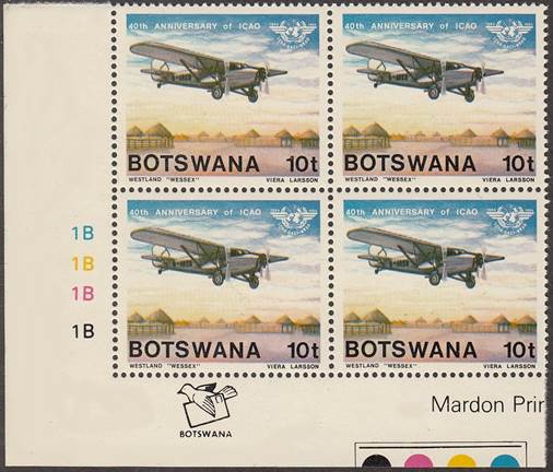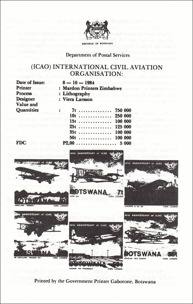 Background : This stamp issue portrays some of the aircraft which played such a vital part in the development of flying in Botswana, as described in the philatelic notice (see here-after). The word Organization is spelled with “s” instead of “z”. ICAO’s official name, as provided by the Chicago Convention (article 43), is: International Civil Aviation Organization.