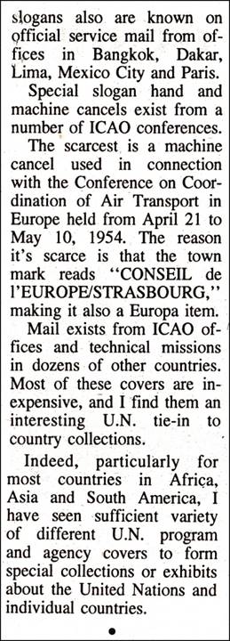 Announcement in the Linn’s Stamp News, 7 November 1994, by Arleigh Gaines. Although he did not collect the issues, the late Ronald Ginns, alias Arleigh Gaines, was instrumental in keeping the philatelic hobby alive by publishing lists of UN topical stamps in his catalog named United Nations Philately.