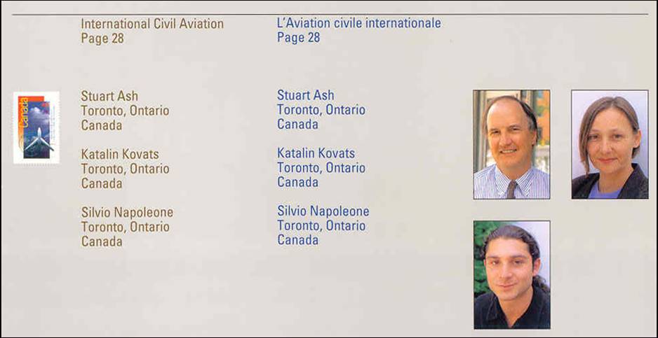 Designers of the Canadian stamp: Stuart Bradley Ash, Katalin Kovats and Silvio Napoleone of Gottschalk & Ash International – Page 49.
