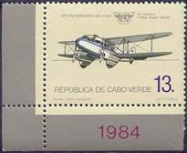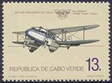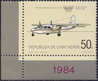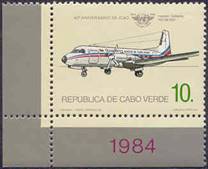 Background: Stamps of this issue show aircraft used by Transportes Aereos de Cabo Verde (TACV) and registered in Portugal (nationality mark: CR); they were used by Cape Verde Islands before they gained independence in 1975. The nationality mark D4 for Cape Verde (as an independent country) was probably used on its airplanes in the 1980s.
