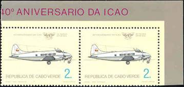 Strip of 2 stamps with text in the margin: 40º ANIVERSARIO DA ICAO. |