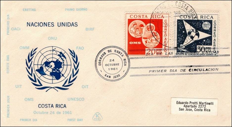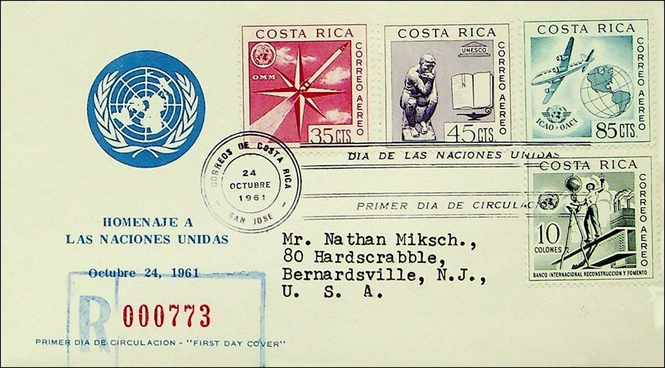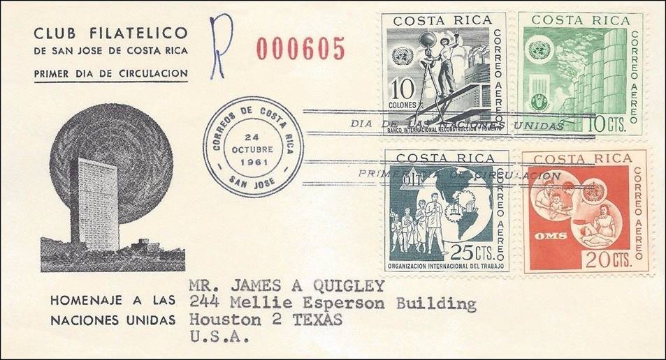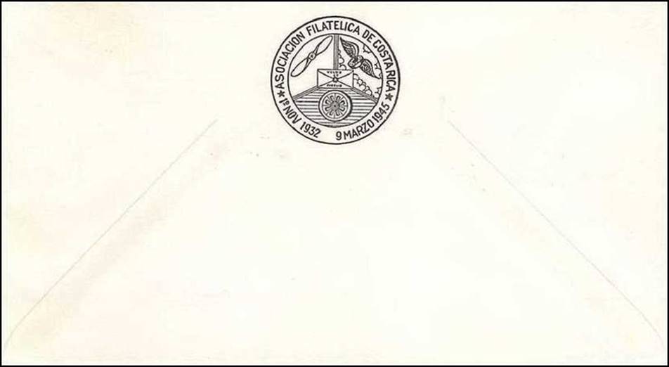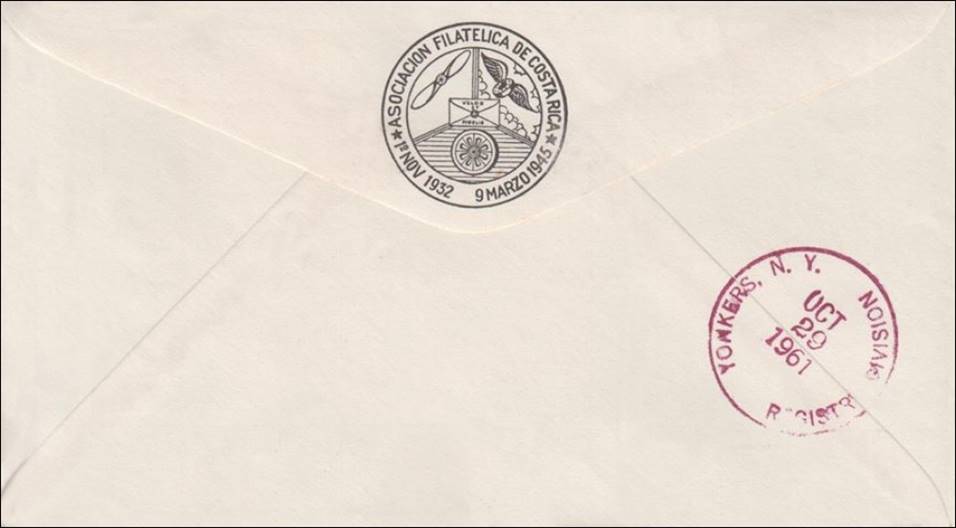 Registered First Day Covers issued by the Philatelic Club of San Jose de Costa Rica. Front and back.
