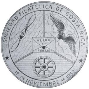 The Asociación Filatélica de Costa Rica (AFCR, Philatelic Association of Costa Rica) is a non-profit institution, established on 1 November 1932. Through multiple activities, it has managed to channel many children, youth and adults, into the hobby and has organized numerous national and international philatelic exhibitions in Costa Rica with great success. The "SOCIEDAD FILATÉLICA DE COSTA RICA" was created in 1932 by a group of enthusiastic stamp collectors and researchers of postal history, who adopted the emblem shown at the left with the date of its foundation: "1o DE NOVEMBER DE 1932". Apparently, this emblem was not used officially until 1938, when for the first time it was displayed on a cover of Society. After that, it seems that it was used a few more times over the years; the Society declined until at the beginning of 1945 when it was refunded and renamed Asociación Filatélica de Costa Rica; the old emblem was adjusted accordingly (see middle picture) to show the new name of the Association and the date of “1o NOV 1932 • 9 MARZO 1945”. Although the propeller and the Hermes icon were maintained, the cart wheel was replaced by a rose window. The legend “VELOX ET FIDELIS” in Latin means: “Quick and Faithful”. This emblem could be seen on the first day covers of this issue. With colors, the emblem was reproduced on the issue of four stamps released on the occasion of the 4th National Exhibition held in 1969. On that occasion only, the name of the AFCR was replaced with that of the exhibition (see at the right). |