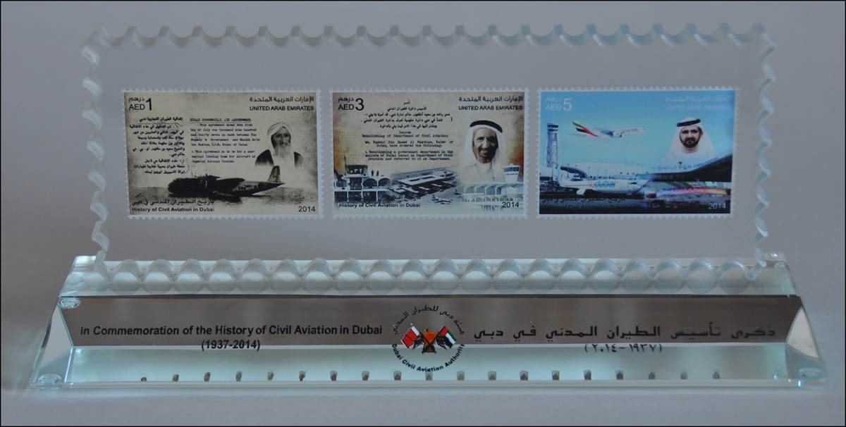 Unveiling ceremony : Speaking on the occasion of the unveiling of the stamps, Sheikh Ahmed said, "The Emirate of Dubai has worked closely with the International Civil Aviation Organisation, ICAO, in a number of initiatives which has shown tremendous progress through the years. Dubai has developed the aviation infrastructure to provide necessary connectivity, facilities and other related services for the benefit of the global aviation industry and the travelling public. We are committed to continue with such contribution." Sultan bin Saeed Al Mansoori, UAE’s Minister of Economy and Chairman of General Civil Aviation Authority, GCAA, in his message to Via Dubai, the newsletter of the DCAA, said, "I consider the Chicago Convention as an important Public International Law instrument that brought every State under one umbrella with a view to developing international civil aviation and preserve friendship and understanding among the nations and the people of the world. The UAE is proud to be associated with this Convention and the ICAO." "The UAE acceded to the Chicago Convection on 25 April 1972 and was elected as a member of the ICAO Council in 2007 and remained a member of the Council since then. UAE carriers have been providing innovative service and efficient connectivity to the travelling public by connecting the continents. There are over 100 scheduled carriers operating through the airports in the UAE. The UAE has signed over 122 fully liberalized and/or open skies agreements with ICAO Member States. This amply demonstrates our liberal approach in the air transport industry." Mohammed Ahli, Director General of DCAA, said: "The Dubai Civil Aviation Authority has been working closely with the ICAO for several decades, supporting its activities in numerous ways. DCAA is committed to continue with its efforts to support the development of international civil aviation for the benefit of the people and to preserve friendship and understanding amongst nations, whilst bearing in mind the importance of maintaining safe, secure and environment-friendly aviation industry." He added: "In order to pay our tribute to our Rulers for their vision and contribution in the aviation sector, we have joined hands with Empost to issue three stamps that reflect the three eras that converged, the wonderful journey of civil aviation in Dubai, from the creek to a twin airport city, and taking its airlines, Emirates and flydubai to greater heights, besides other areas of the aviation industry." At the ceremony, the DCAA honoured its strategic partners: Emirates Airlines, flydubai, Dubai Duty Free, Dubai Customs, Dubai Police and General Directorate of Residency and Foreigners Affairs in Dubai. To mark the occasion, the DCAA released a special edition of its monthly bilingual newsletter, Via Dubai. In a special message to the newsletter, Dr. Olumuyiwa Benard Aliu, President of the ICAO Council, said, "Over the past seven decades, and with the Convention and its 19 Annexes to guide us, ICAO and its 191 Member States have made enormous progress in realizing this vision. Air transport is an essential component of our global society, a powerful driver of economic, social and cultural development, and the safest and the most efficient mode of mass transportation ever created. The aviation sector will continue to grow exponentially in the next decades, with air traffic set to double its passenger and flight capacity by 2030." |