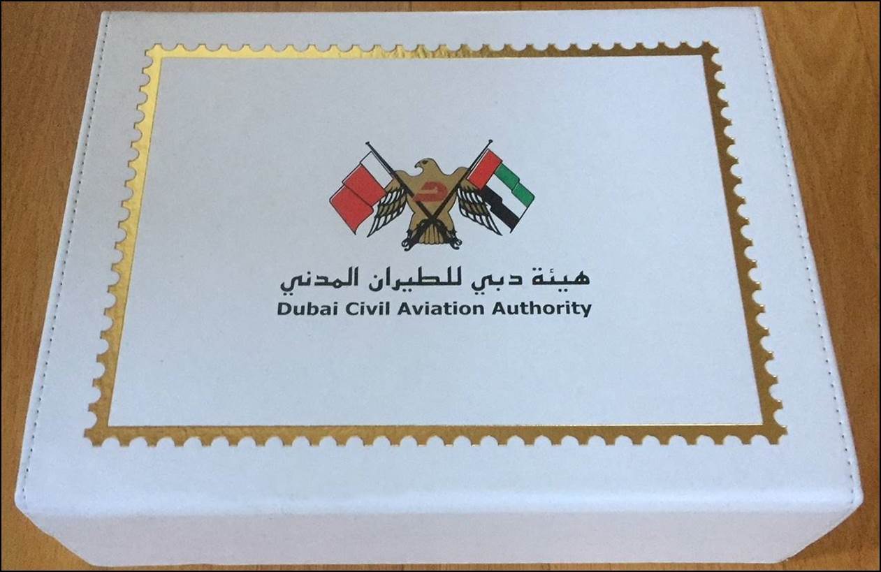 The plaque shown here-above was nicely wrapped in white deluxe box, with the emblem of the Dubai Civil Aviation Authority, surrounded by a golden frame.