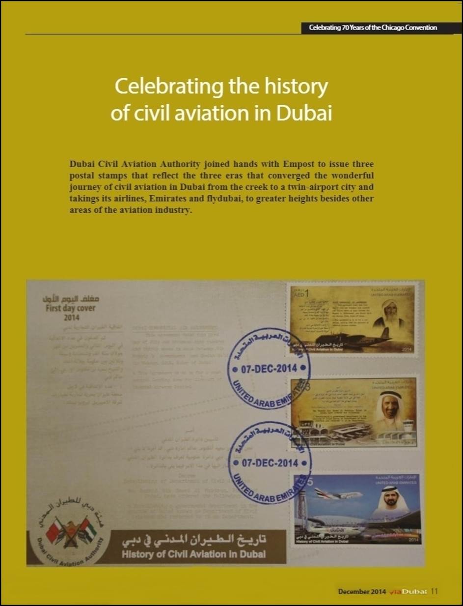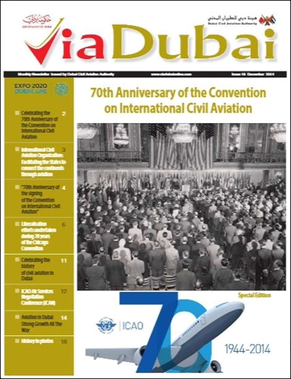 The December 2014 issue of Via Dubai magazine was devoted to the commemoration of ICAO’s 70th anniversary. The above pictures show the front page and page 11 of this issue.