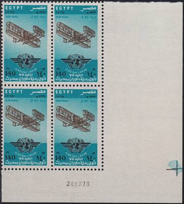 Lower-right block of 4 stamps. The printing date (shown at the lower part) in the following format 28 II X 78 should be understood as 28 December 1978. |