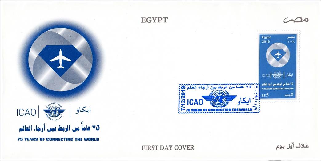 Background: The First Regional Air Navigation Meeting for the Middle East Region was held in October 1946 in Cairo, Egypt. This country took this opportunity to overprint one of its stamps for the commemoration of this meeting (see link here); this is the only stamp from the topical collection issued during the lifetime of PICAO, the Provisional International Civil Aviation Organization. The Middle East Regional Office was opened in Cairo, Egypt on 20 January 1947 and now encompasses 15 Member States. Previously Egypt issued ICAO related stamps in 1978 (History of aviation) and in 1994 (ICAO’s 50th anniversary).