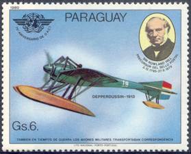 Paraguay – 8 April 1980 100th Anniversary of Sir Rowland Hill death – 75th Anniversary of aviation Deperdussin is spelled with 2 ‘p’ on the stamp.