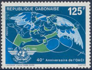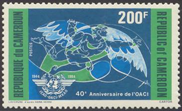 Cameroon (30 November 1984) and Gabon (1 December 1984) 40th Anniversary of ICAO The name of the Swiss Artist Erni is printed Herni.