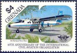 Grenada – 15 May 1985 - 40th Anniversary of ICAO De Havilland is printed with one 'l'.