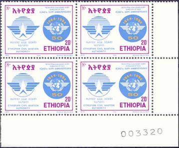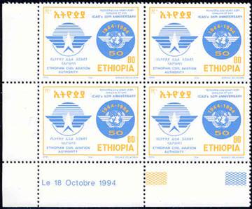 First Day Cover with texts in Amharic and English – Error in the ICAO logo: the placement of Australia as a continent on the world map is not correct. See correct emblem here-after.