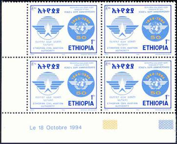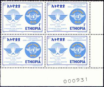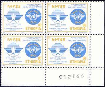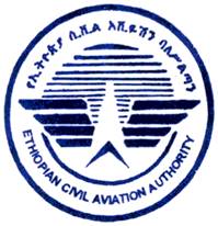 Emblems of the Ethiopian Civil Aviation Authority and of ICAO’s 50th anniversary. |