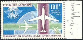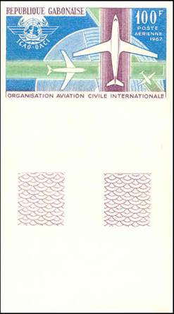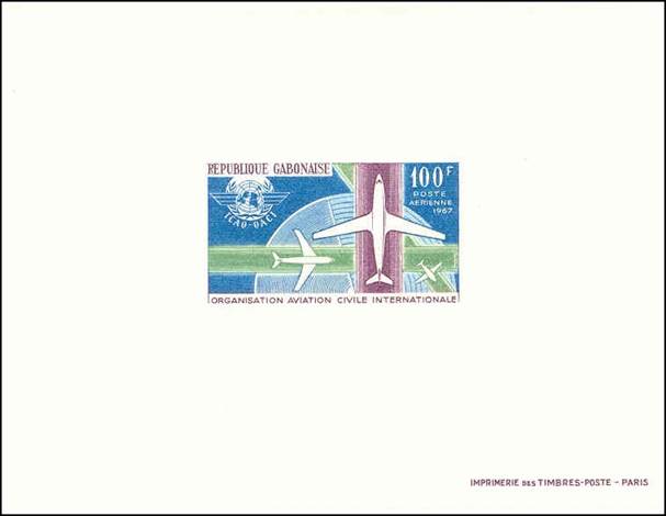 Background: ICAO provided instructions to the Contracting States to commemorate its 20th anniversary on 7 December 1964, corresponding to the anniversary of the signing of the Convention on International Civil Aviation, in Chicago. This country still calculated the 20th anniversary on the basis of the constitution of the new permanent International Civil Aviation Organization (ICAO) on 4 April 1947; this is considered as an error. This stamp and cancel on the cover show an error: "de l'" is missing in the French name of the Organization, which should be written Organisation de l’aviation civile internationale, as per Article 43 of the Chicago Convention which reads as follows: ”Il est institué par la présente Convention une organisation qui portera le nom d'Organisation de l'aviation civile internationale.” Gabon became an ICAO member on 17 February 1962, thus bringing the membership of ICAO to 92. |