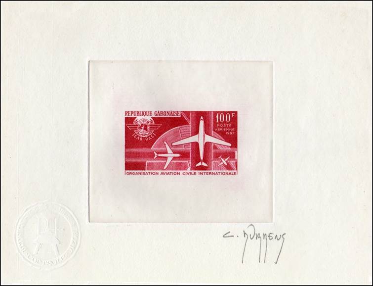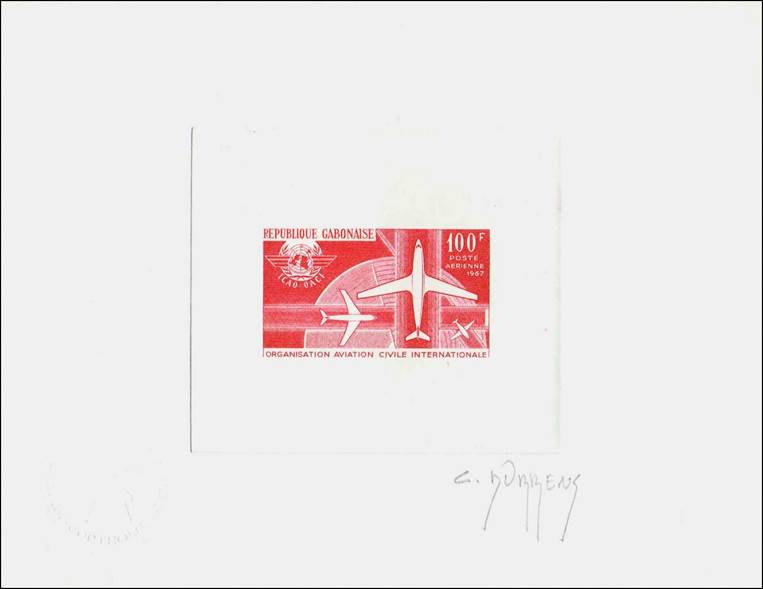 Signed Artist Die Proofs - Embossed seal of PTT printers (at the left bottom) – Signed by the Designer Claude Durrens. Note that Durrens appears on the plate proofs, imperforates, de luxe and perforates, but not on the die (see white vertical rectangle on the right of the stamp, without the Designer’s name). About 28 signed die proofs exist.