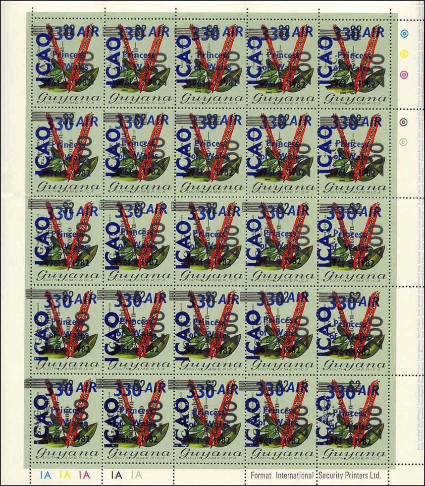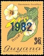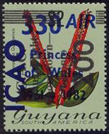 The set of two ICAO stamps illustrated here shows the complexity of the Guyana overprints. The Flowers definitive set (of which two examples are shown here) comprises a large number of stamps that proved amenable to receiving numerous overprints and surcharges. Almost 300 different types of overprints exist on these stamps. In 1981, the stamp-issuing policy of Guyana underwent a drastic change. From 1981 through 1985, Guyana was always in the top 10 of the most prolific-issuing countries in the world. A few years later, it became several times the most prolific stamp-issuing country in the world. Guyana has often had problems, and these became more pronounced by the end of the 1970s. The country’s economy was always rather weak, and by the 1970s, it was in sharp downturn. The Guyanese dollar was subject to great inflation, hurting the country’s ability to import goods. Sometime in the early 1980s, the Government of Guyana made the decision to ease some of its foreign exchange shortages by issuing far more stamps for sale to collectors than were required for postal needs. Unlike most countries that produce speculative and abusive stamp issues, Guyana chose to create most of its new issues by overprinting existing stocks of previously issued stamps. The local overprinting did ensure that almost all of these new issues were at least available in Guyana for postal use. Between 1981 and 1989, the majority of Guyana stamps were created by overprints and surcharges. By 1990, the deluge of overprinted and surcharged stamps in Guyana had come to an end. One suspects that there were no stamp stocks remaining to be overprinted. At this point, Guyana began to order new stamps produced abroad; the flood of new stamps continued, however. |