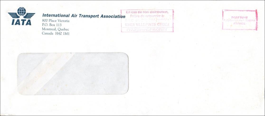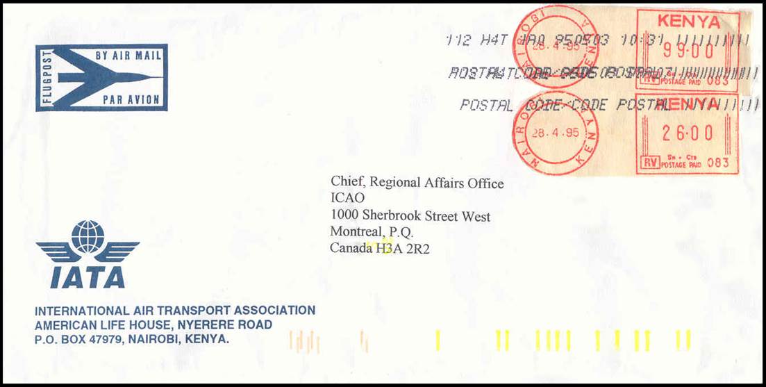 IATA Service cover sent to ICAO – Postmarked on 28 April 1995