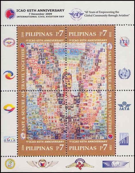 Philippines – 7 December 2009 – 65th Anniversary of ICAO. This souvenir sheet highlights the global cooperation between ICAO and the Philippines’s Department of Transportation and Communications (DOTC), and various bodies of the country and other organizations of the world, among which IATA. |