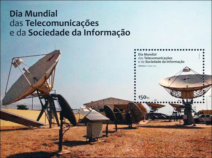 Mini-sheet issued by Angola on 17 May 2012 celebrating of the World Telecommunication and Information Society Day. |
