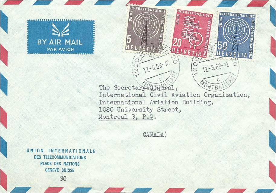 Service cover sent by ITU to ICAO Secretary General. Postmarked on 12 June 1969.