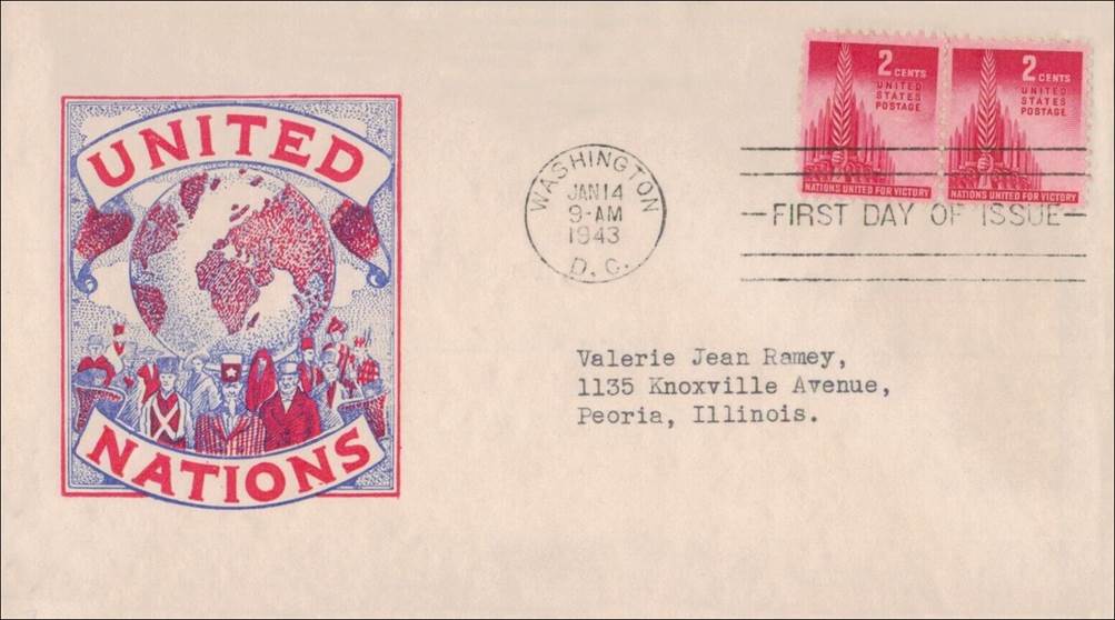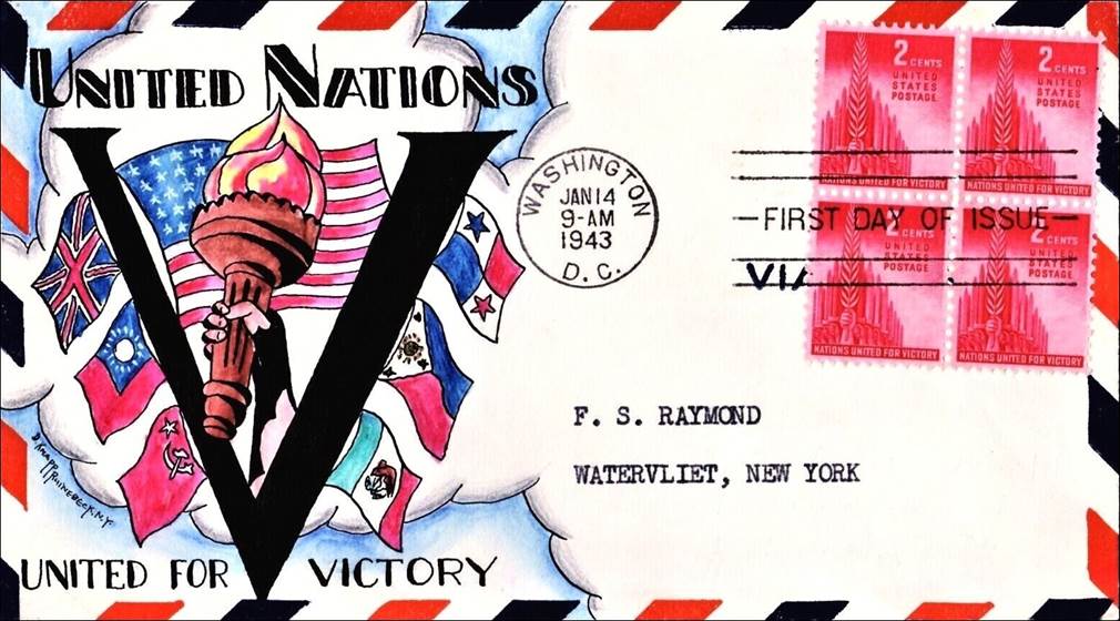 The media and then the general public began referring to the Allies as the "United Nations"; moreover, by early 1943, patriotic covers started to appear using United Nations themes.