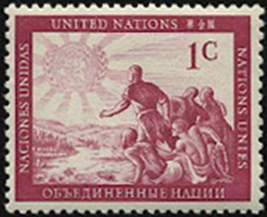 First stamp issued by the UNPA 24 October 1951 “Peoples of the World” |