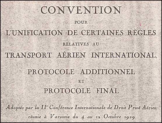 Attended by 65 delegates from thirty-three nations, the Second International Conference on Private Air Law met in Warsaw, Poland, from 4 to 12 October 1929; it approved the Warsaw Convention formally entitled Convention for the Unification of Certain Rules Relating to International Carriage by Air, which was signed by 23 States on 12 October 1929. This convention established the international liability for air carriers and the monetary limits for damage, delay and loss. At that time, the convention was a major contribution to the unification of international aviation law, as most airlines were government-owned and the aviation industry was in its early years struggling to compete with the rail and shipping industries. The liability limits for air carries were capped at limits that were appropriate for that era and for an infant industry. This convention became soon the widest accepted unification of air law. The convention of 1929 came into force on 13 February 1933. More information on the Warsaw Convention can be obtained by clicking on the following link: The Warsaw System on air carriers liability.