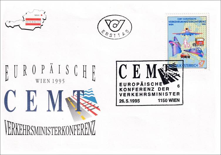 First day cover (and special insert) commemorating the annual meeting of the European Conference of Ministers of Transport (ECMT) held in Austria in 1995. Austria held the ECMT Presidency for 1995.