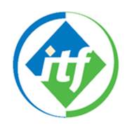 ITF Current emblem (Circular form representing both the globe and the wheel; green and blue colours for transport by air, sea and land) |