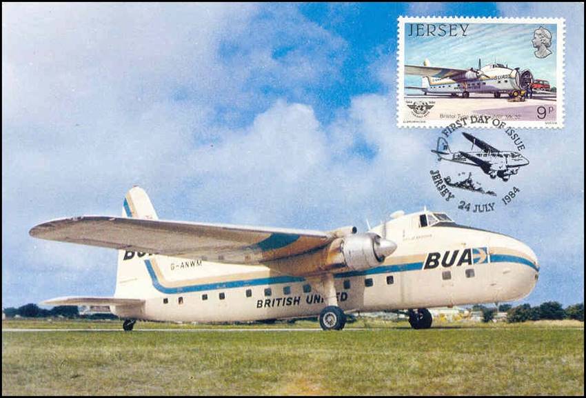 Maximum cards (Printed by Channel Printers). The registration mark G-ANWM of the aircraft on the card matches the one shown on the stamp.