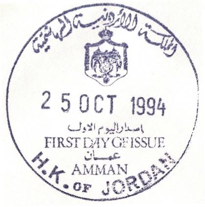 Background: The coat of arms of Jordan is depicted on the first day cover and is described here-after. The crown symbolizes the system of