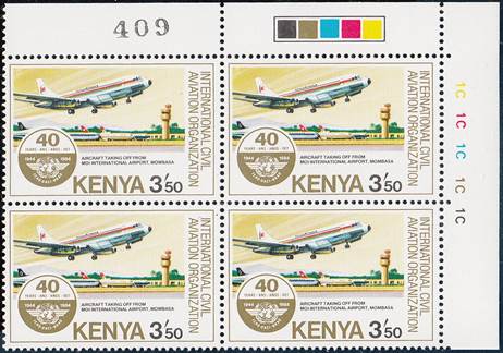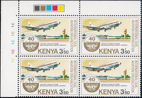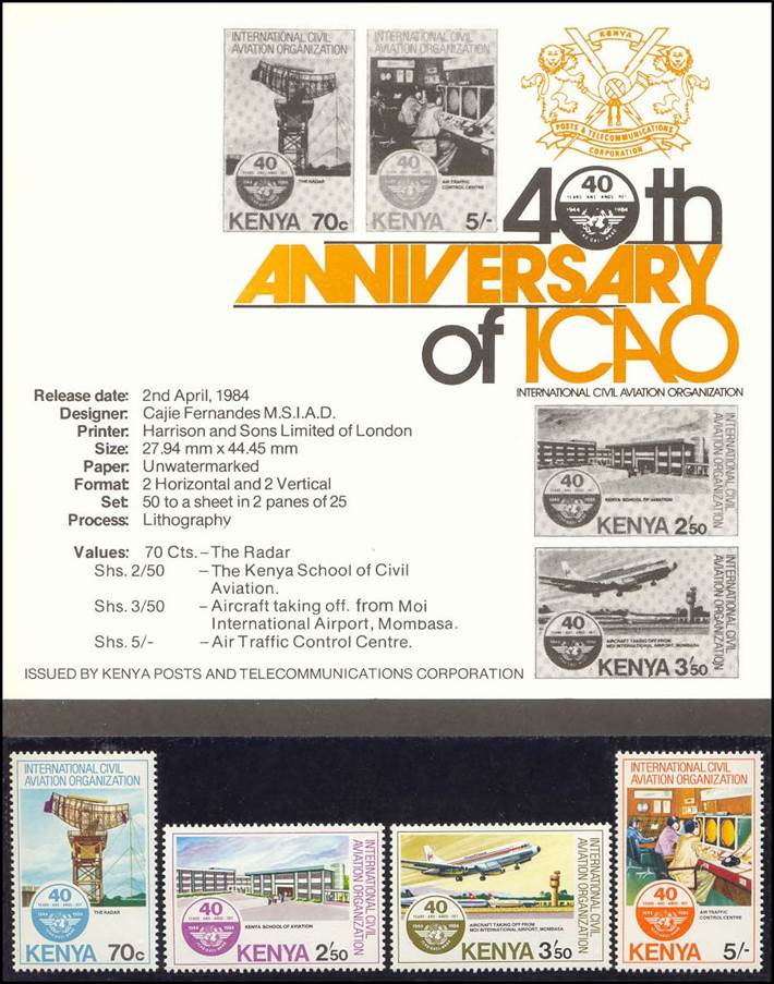 Registered cover sent to ICAO from the Managing Director of the Stamp Bureau in Nairobi, with the complete set of 4 stamps of the issue. See enlarged hand-stamp. Circle date cancel on 2 April 1984.