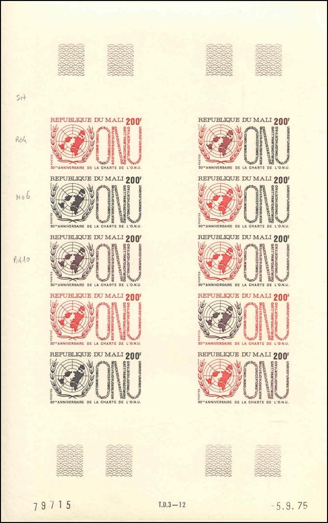 Trial Colour Full Sheet (Imperf; Gutter block of 10) – Multicolour – Plate number, press number (T.D.3-12) and date on the bottom; Pencil marks (printer’s colour code).