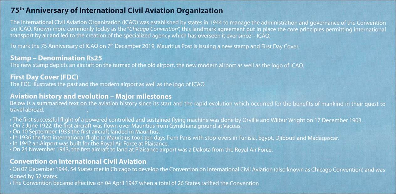 Mauritius - 75th Anniversary of ICAO