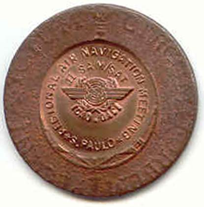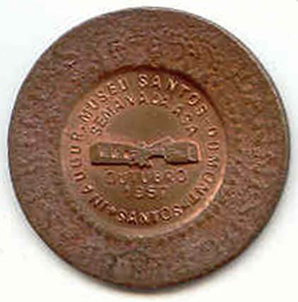 The medal shown here below, with a diameter of 36 mm, was struck on Brazilian colonial copper for the Philatelic and Numismatic Club of Santos, in relation with SANPEX, i.e., Santos Philatelica Exposicao (i.e., Santos Philatelic Exhibition), and commemorates the inauguration of the Museum Santos Dumont and the second SAM/SAT Meeting.