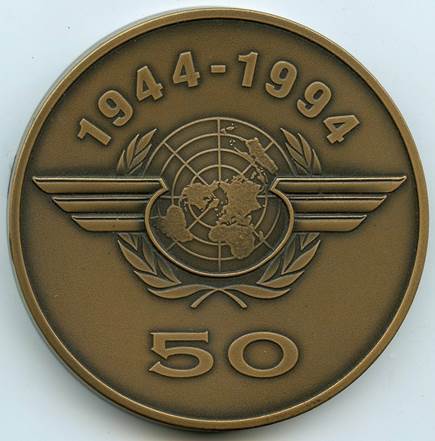 In 1994, the International Civil Aviation Organization (ICAO) marked its 50th anniversary by awarding a commemorative 50th Anniversary Honorary Medal (bronze medal; diameter: 7.5 cm) to the entity or individual, in each member state, that had made a relevant contribution to the development of civil aviation.