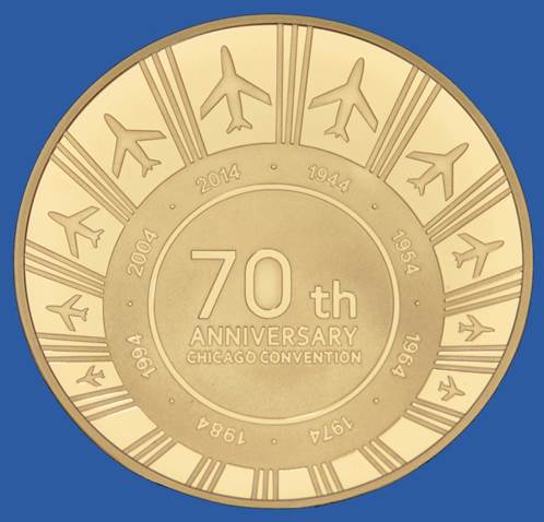 On the occasion of its 70th anniversary, ICAO requested the Banknote Printing and Minting Works of the National Bank of Ukraine to mint 1000 medals commemorating this landmark diplomatic event in ICAO’s history.