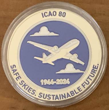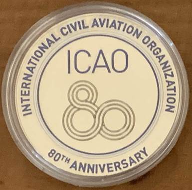 Medal (font and back) commemorating the 80th anniversary of ICAO. |