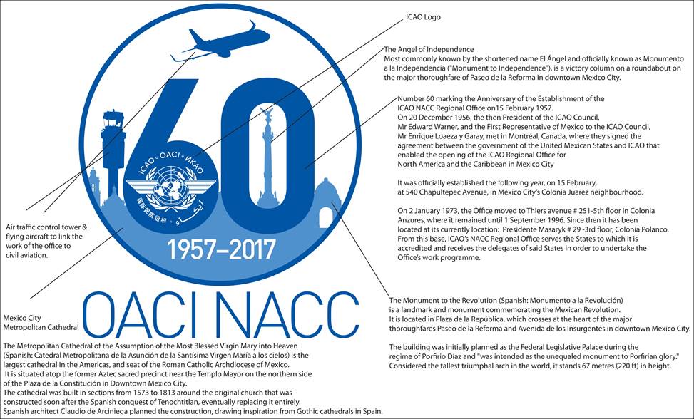 Background: The stamp was issued on 7 December, marking the International Civil Aviation Day. History of the establishment of the NACC Office. Shortly after the establishment of ICAO in December 1944, the interim Council of the Organization recognized the need to subdivide the world into Air Navigation Regions in order to facilitate the planning and implementation of ground services and facilities essential for international air transport operations. In each of these regions, a regional office might be established; however, for increased efficiency and economy, this number was later reduced. From 1947, the duties of the North American Regional Office were carried out by the Air Navigation Bureau (ANB) at Headquarters. See more information about this at the following link: The Regional Offices and the Regional Organization. In 1955, during its review of the budget estimates for 1956, the Council considered a report by the Secretary General on the comparative costs of operation of the North American and Caribbean Regional (NOCAR) Office at different locations and decided that, as an interim measure, budgetary provision should be made to enable the Office to be established as a separate entity at Headquarters. At the same time, the Secretary General was asked to present a separate study on the question of establishing the Office at a point in the region where it could offer the best service to the States and territories concerned. During its off-site 29th Session - Part I held in Caracas from 18 to 19 July (right after the 10th Session of the Assembly held in Caracas from 19 June to 16 July 1956), the Council chose Mexico City as the site of the NOCAR Office, subject to the conclusion of a satisfactory arrangement for premises and the grant of the customary privileges and immunities. In December 1956, an agreement extending these privileges and immunities and providing for accommodation at a token rental (1 peso per annum) was approved by the Council and signed on its behalf by the President. This transfer of the Office became effective on 15 February 1957, as the guest of the Government of Mexico, on the sixth floor of 540 Chapultepec Avenue, Colonia Juarez, Mexico City. Unfortunately, the severe earthquake which struck the Mexican capital on 28 July 1957 caused such damage to the building that it had to be evacuated; at the year’s end, the Office was still in temporary quarters. Repairs to the building on Chapultepec Avenue were, however, proceeding and it was expected that it would be ready for occupancy again in 1958. Meanwhile, the United Nations took steps to have all UN and Specialized Agencies’ offices in Mexico City housed in this building. The purpose was to lease the entire building from its owners and to sub-lease office space to the various Agencies. At the end of October 1958, the NOCAR Office reoccupied the premises in Mexico City (540 Chapultepec Avenue) from which it had been obliged to move until the damage caused by the earthquake that struck the Mexican capital in July 1957 could be repaired. The desire of the United Nations to have all UN and Specialized Agencies offices in Mexico City in one building was not realized. The other Agencies preferred the quarters they had to those planned for them in the Chapultepec Avenue building, while this arrangement under which ICAO occupied its premises there did not make it advantageous for it to move to the building that housed most of them.