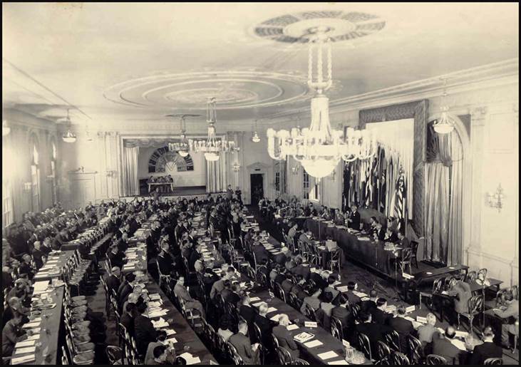 The Windsor Hall of the Windsor Hotel, Montréal, on 21 May 1946, the first day of the PICAO Assembly, was attended by some 400 people in all from every part of the world. |