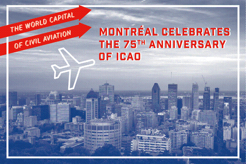 Postcard used for the announcement of the cocktail dinner to mark the 75th anniversary of ICAO held on 23 September 2019, as part of the Civil Aviation Week.
